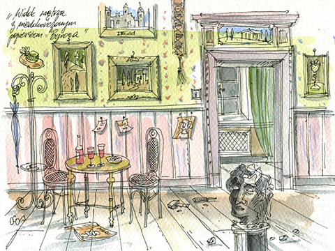 Widok wnętrza ze snem kominiarza Jakuba