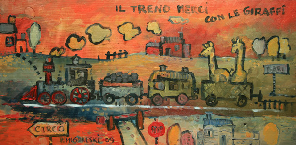 Pociąg towarowy z żyrafami